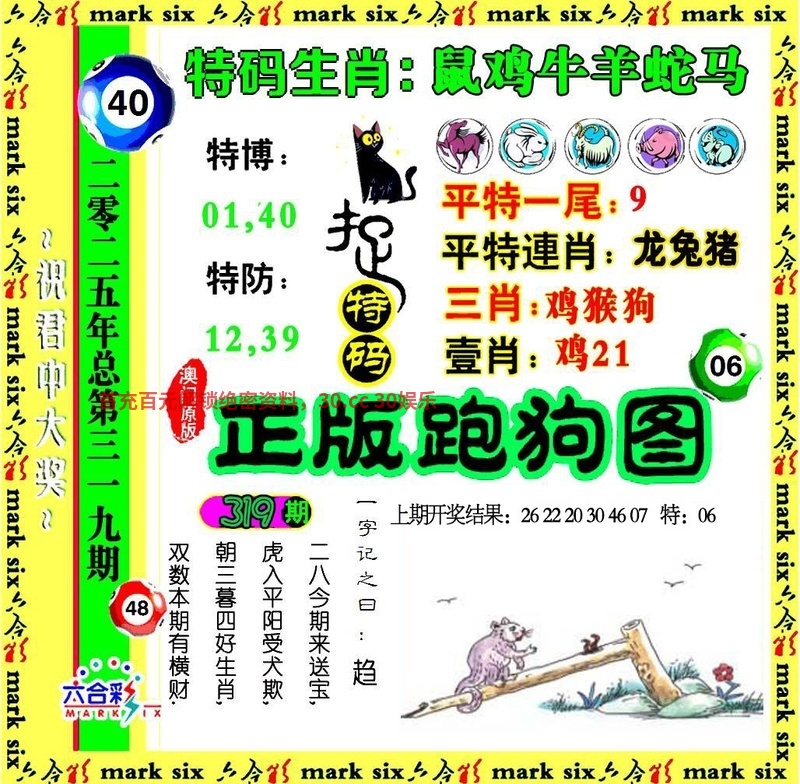 309期:【杀三肖】【猪牛狗】开:鼠06准